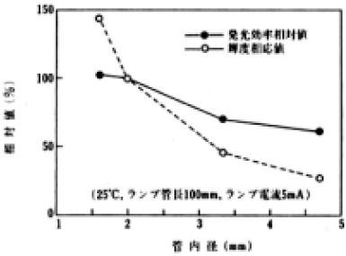図3 冷陰極蛍光ランプの発光効果とバルブ内径依存性
