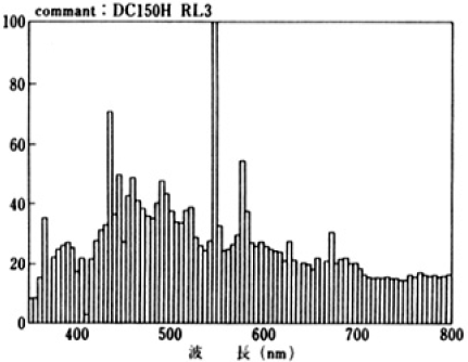 表3に表2の例で示した大画面テレビ用に設計したランプおよび照明系の特性例を示す。また、図7に上記設計のDC形150Wランプの分光分布9)を示す。