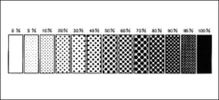 図7 標準的な形状の網点によるハーフトーンの階調スケール(拡大図)