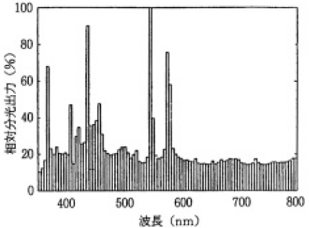 参考としてアーク長3mmの交流点灯形250Wランプの分光分布の例を図3に示す。