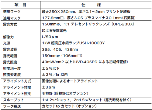 • (1) 有効露光範囲150mmΦ,解像力9µm,倍率1:1のテレセントリックレンズを使用している。