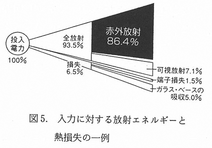 図5 のように,投入電力の85%以上が赤外線に変換されて照射される.