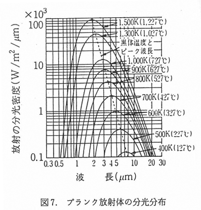 式2 をウイーンの変位則といい,図7 中の斜線がこの式に対応する.
