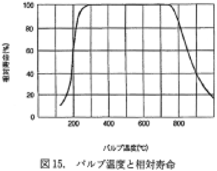 図15 に一般的なハロゲンヒータのバルブ温度と寿命との関係を示す.