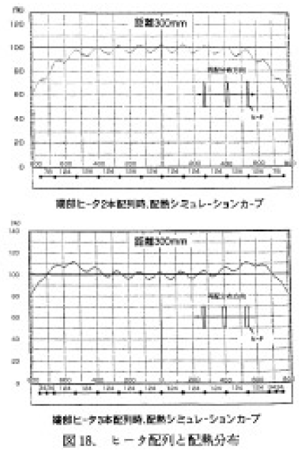 以上はハロゲンヒータの長さ方向の配熱分布を説明したものであるが,軸方向でも複数のヒータの配列によって同様のシミュレーションができる.(図18)