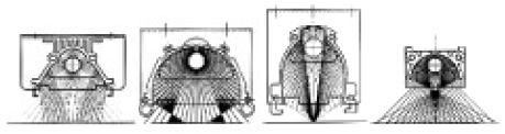 反射ミラーにハロゲンヒータを組込み,加熱ユニット化することでより効率の良い加熱を実現しようとしたものが製品化されている.大きな面を均一に加熱(図24)するなど目的にあった照射を実現するため,様々の光学設計された反射ミラー(図25)が用意され,工業加熱分野での利用が高まってきている.
