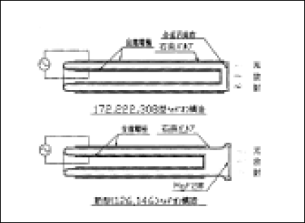 エキシマランプの構造上の最大の特徴は、電極が放電空間内に無いということである。そして、誘電体(石英ガラス)、放電空間、電極の3者の配列が一定の条件を満たせば、どのような形状にする事も可能である。我々は、材料の入手性、加工性の点から、図.1に示すような中空二重円筒状の構造を採用した。