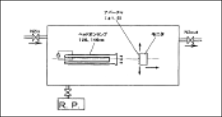 真空ポンプR.P.でチェンバ内を真空(約2Pa)に排気した後、窒素入り口バルブを徐々に開放してチェンバ内を窒素(純度99.999%以上)で満たす。チェンバ内が窒素で満たされた後は、窒素出口バルブを開放して系内に酸素が流入しないように測定中は流量約2L/minの窒素でパージし続けている。