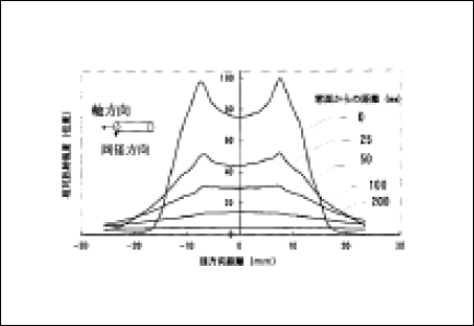 図.5 ランプ窓面からの距離と経方向の放射照度空間分布