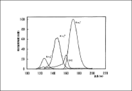 ACTON社製真空紫外分光器(型式VM-502)を用いてAr2*、Kr2*、Xe2*エキシマ光の分光分布の測定を行った。比較のため、一般に市販されている浜松ホトニクス製30W重水素ランプ(L-819-01)の分光分布測定も同時に行った。結果を図.7に示す。Ar2*エキシマランプ(126nm)、Kr2*エキシマランプ(146nm)、Xe2*エキシマランプ(172nm)の重水素ランプに対する強度比は 4:7:13であった。