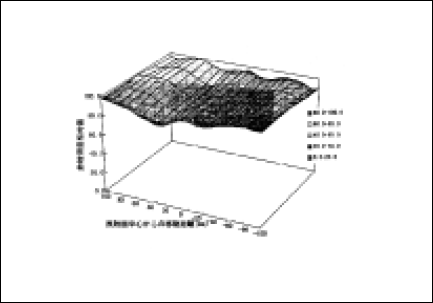 図.9 窓開口230mm×230mm平面光源の窓面における放射照度分布