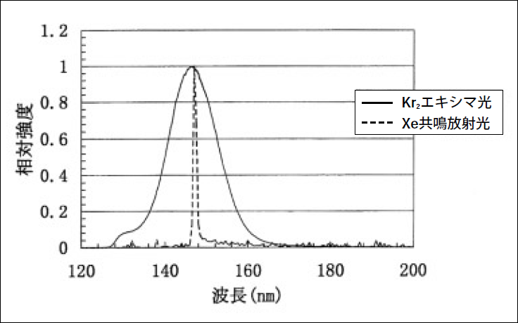 図6 Kr2エキシマ光とXe共鳴放射光の分光分布例