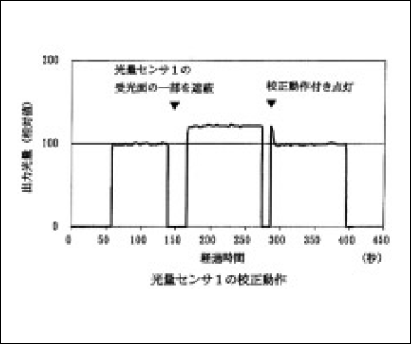 ・消灯期間中に、光量センサ1の受光面の一部を遮蔽して、模擬的に、センサの感度が劣化した状態を、故意に発生させた。