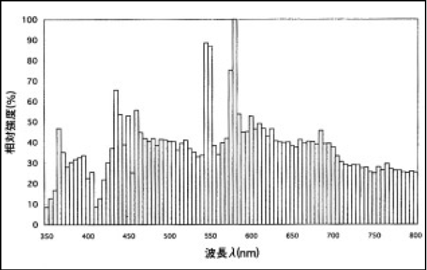 図4-2 [沃化ナトリウム+沃化タリウム+沃化インジウム]封入ランプの分光分布