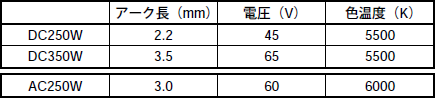 直流点灯型メタルハライドランプは交流点灯型ランプの寿命特性の改善のため開発されたランプであり、アーク長の短縮に対して寿命特性があまり犠牲にならない特長がある。