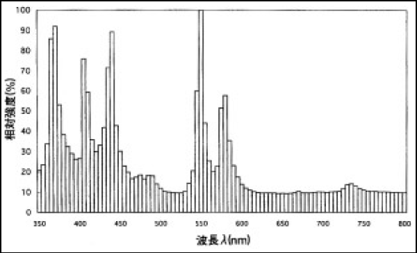 • ①沃化インジウム+沃化タリウム+沃化ナトリウム(図4-2に分光分布)