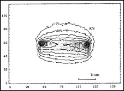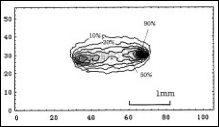 図4-14 直流点灯型150W超高圧水銀ランプの輝度分布(アーク長1.4mm)