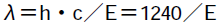 ここで、λは波長[nm]、hはプランク定数、cは光速、Eは放射エネルギー[eV]である。