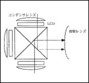 色合成のためのライトバルブから投射レンズまでの光学系、初期の3インチ前後の液晶素子が、1.3インチを経て0.9インチにまで開口率をあまりおとさずに小型化できたことで、図6-2に示すようなガラスクロスプリズムを用いることが可能となった。このことはこの部分の光学系を小型化できただけでなく、先に述べた投射レンズの小型化をも可能にした。