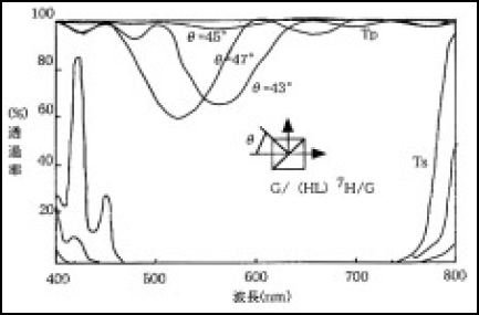実際のものとは異なるが可視領域全体で広い入射角に対して良い分離特性を維持するのが難しいことがわかる。