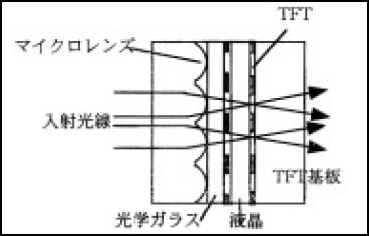 図6-8 マイクロレンズ付き透過型液晶で実質的開口率が増加する様子