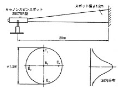 照射する距離の長短に対応してキセノンショートアークランプが使用される。350W~4000Wまであり、例えば、照射距離15m以上の場合はXe- 2kW、5m以上は3kWが使用される。