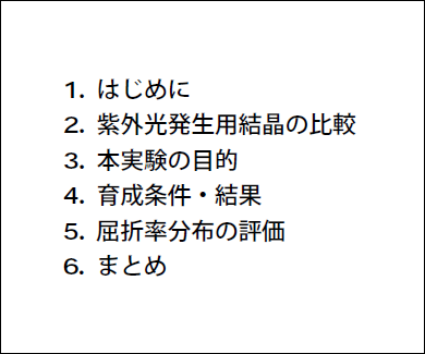 非線形光学結晶CsB3O5(CBO)は、167nmまで透過する、大きい複屈折率を有する[1]、紫外域においてより大きい実効非線形光学定数を持つ、β-BaB2O4やLiB3O5で実現できなかった185nmまで位相整合可能である[2]、などの良好な特性を持つことから、深紫外光発生材料として注目されつつある。WuらはCBOの光学特性などを評価したが[1]、結晶育成についてほとんど記述されておらず、これ以外でも現在までにCBO単結晶の育成方法についての報告がない。全個体深紫外光源の開発において、高品質なCBO結晶の育成条件の確立が重要な要素となる。今回、カイロポーラス法を用い大型CBO単結晶に成功したので報告する。