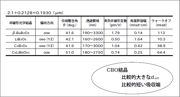 表3.非線形光学結晶の比較