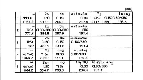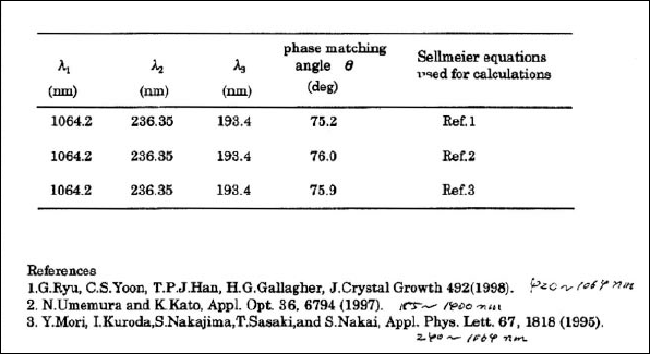 表2.Calculated Phase matching conditions of Type 1 CLBO SFM at room temperature