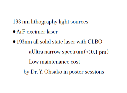 A line-narrowed ArF excimer laser are being developed as a light source for 193 nm lighography using a refractive lens system. The system is required a narrow spectral bandwidth, high laser output stability and long lifetime. In this laser, we present a newly developed sub-picometer ArF excimer laser for lithography.