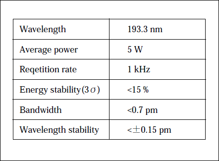 Table3. Characteristics of the ArF excimer laser system