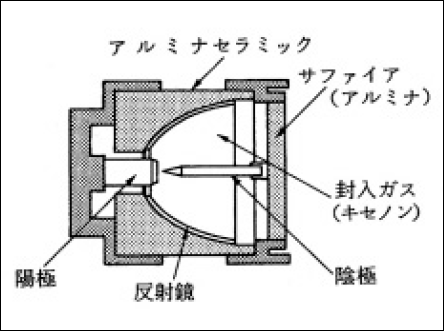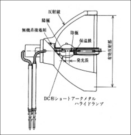 図5 反射鏡付き直流点灯型メタルハライドランプの構造例
