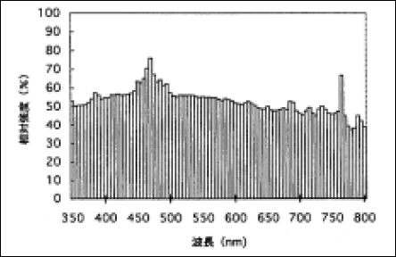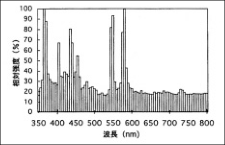 図7 に直流点灯型150W超高圧水銀ランプの分光分布の例を示す4)