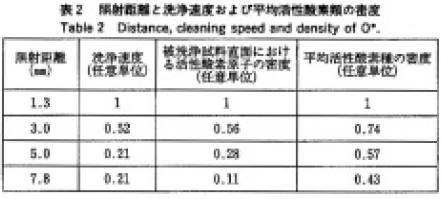 表2から、実験から求めた洗浄速度の照射距離依存特性は、被洗浄試料直面における活性酸素原子の密度{O(1D)}の照射距離依存性とよく一致していることが分かった。