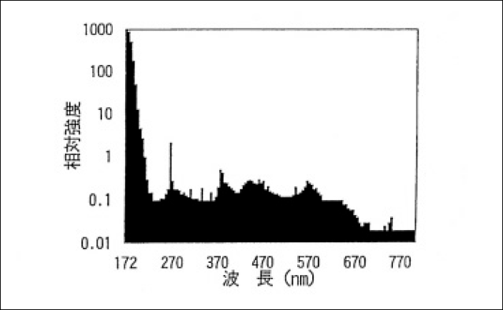 - (1)それぞれの光化学反応に対応する特定の波長範囲(紫外および真空紫外領域が多い)にだけ放射を有する。