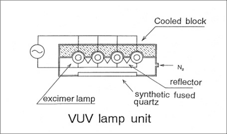 光化学反応の応用は、半導体製造やLCD製造プロセスにおけるドライ洗浄、光CVD、プラスチックスの表面改質等において、既に実用化されている。これらの光化学反応用光源には以下の特性が要求される。