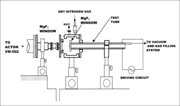A breaf corss sectional view of an experimental setup for spectral measurement of external electrode Xe discharge lamp in vacuumultraviolet region.