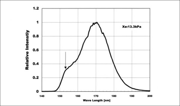 Fig.2 外部電極式希ガス放電ランプの高周波点灯時の真空紫外分光特性