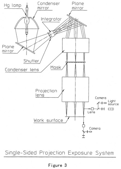 次に一括投影露光機の中で特に両面同時露光と裏面アライメントによる両面露光についてその問題点と課題を考察する。