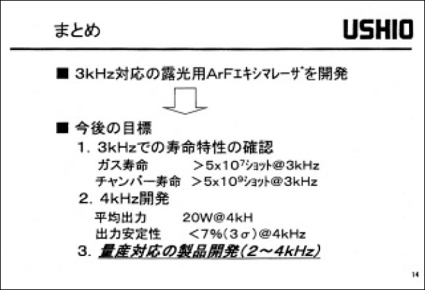 露光用3kz ArF エキシマレーザーの開発