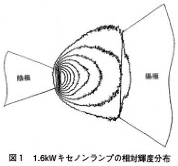 陰極直前の輝点の輝度が非常に高いが,光束を稼ぐためには発光部の全体の光を取り込む光学設計が望ましい。