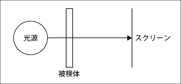 建築用や自動車ガラス、眼鏡、コンタクトレンズ、各種フィルム等の透過体を光束が通過するとき、キズがあるとその部分の透過率が落ちるため、スクリーンに黒く写ります。比較的大きな200µm以上のレベルのキズを調べます。