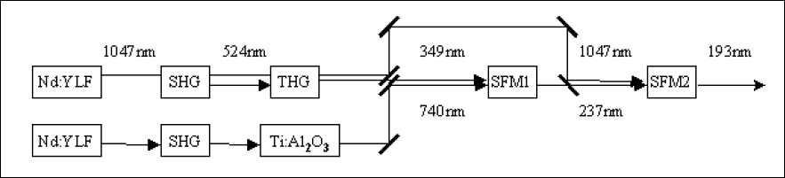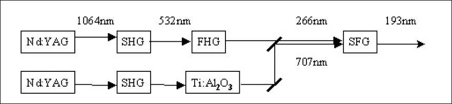 By removing the fifth-harmonic-generation stage and replacing the OPO with a tunable source emitting near-IR output such as a Ti:sapphire laser, 193nm can be also produced as schematically shown in Figure 2.