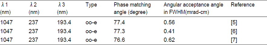 Table 2. Calculated properties of CLBO and BBO crystal for the 193nm or 196nm generation.