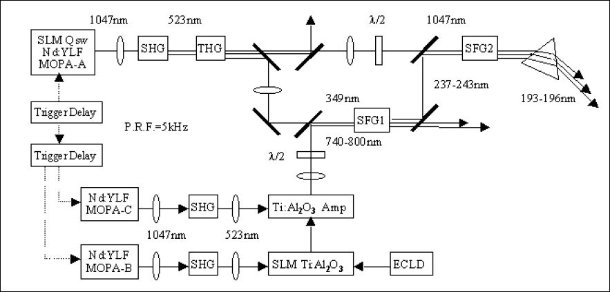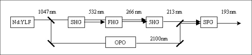 By removing the fifth-harmonic-generation stage and replacing the OPO with a tunable source emitting near-IR output such as a Ti:sapphire laser, 193nm can be also produced as schematically shown in Figure 2.