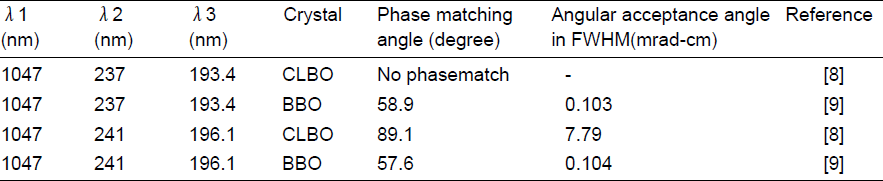Table 2. Calculated properties of CLBO and BBO crystal for the 193nm or 196nm generation.