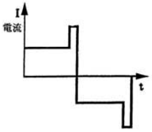 交流点灯ランプのアーク輝点の移動の原因は、ランプの陽極動作と陰極動作の動作機構の違いによる。すなわち陽極輝点が比較的大きいのに対して、特に高圧蒸気中の放電では陰極輝点は非常に小さいため、陽極輝点中のどこに陰極輝点ができるかが一定しないためアーク輝点の移動が起こるものと考えられる。これに対しPhilips社では図2に示すように矩形波電流の最後に高電流期間を作ることにより、陰極輝点の移動を制御できると報告している(4)。