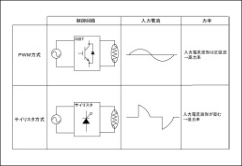 図1.PWM方式とサイリスタ方式の入力電流波形比較