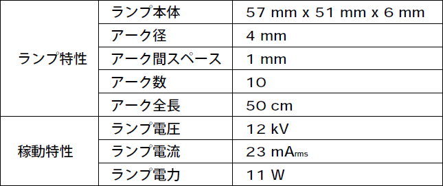 尚、波長分布は一般の低圧水銀ランプと同様の波長分布を示します(主波長253.65nm )。