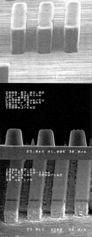 Figure 1 SEM Images of Photoresists Processed by Projection Exposure